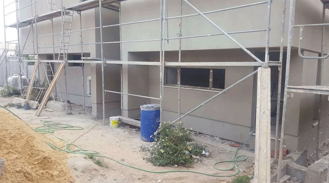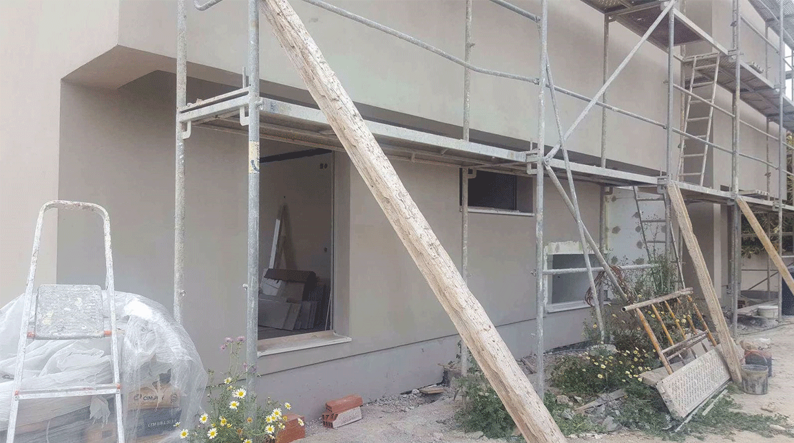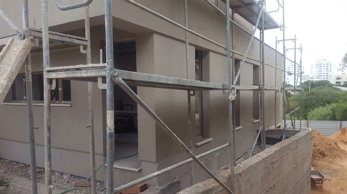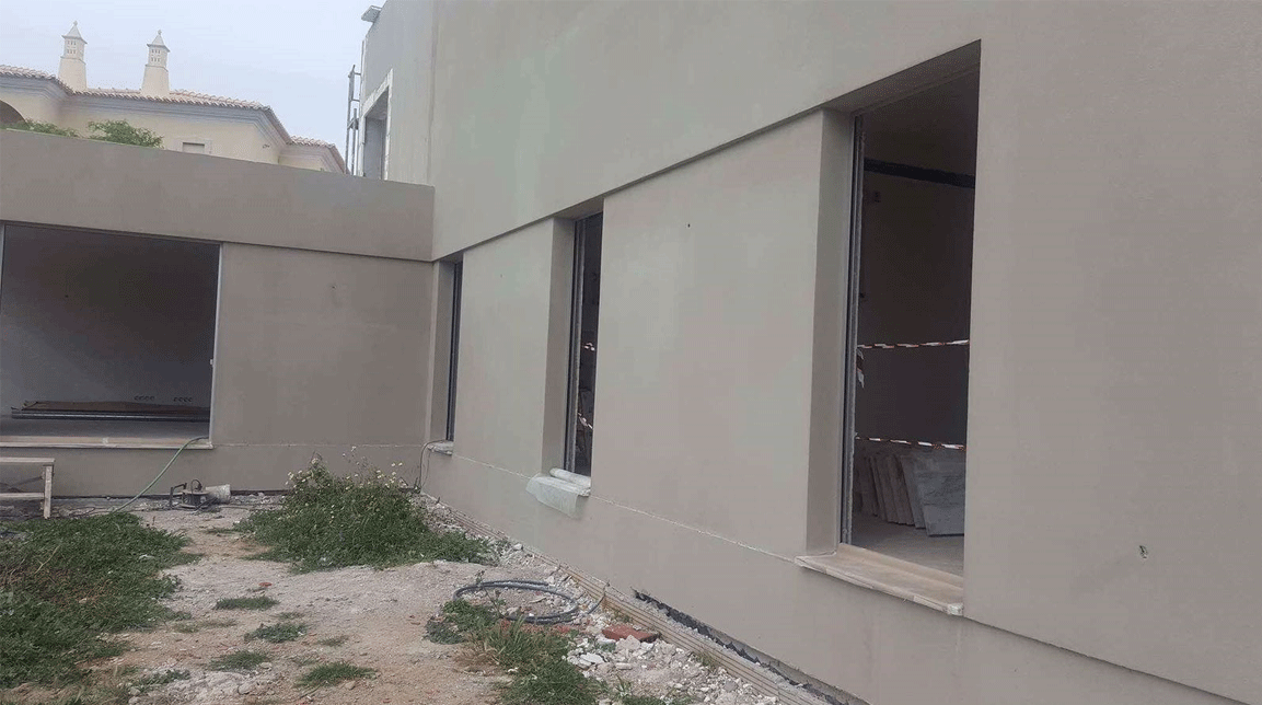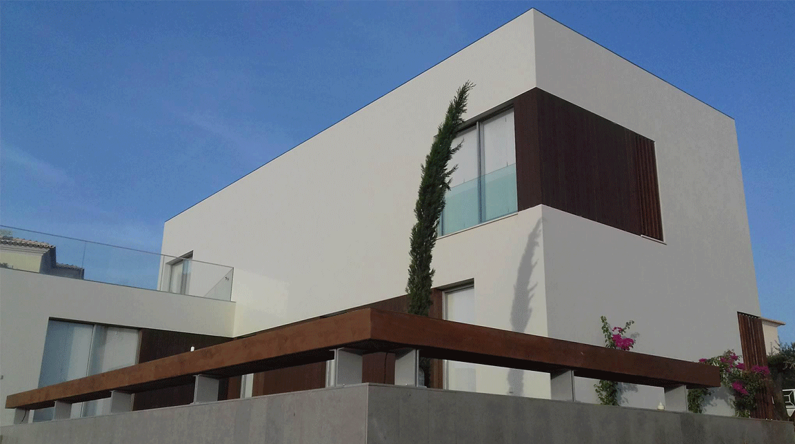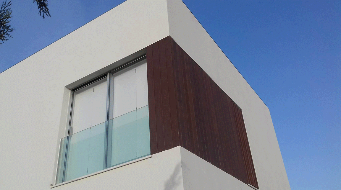 Moradia na fase de acabamentos, finalizada com os elementos de madeira
